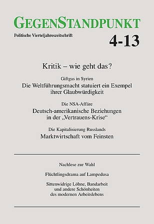 Massensterben vor Lampedusa - Europas Kampf gegen die Überbevölkerung, die sein globaler Kapitalismus produziert Nicht einmal einer Handvoll von Asylsuchenden, die in Hamburg oder München mit Hungerstreiks oder Kirchenasyl auf ihre Lage aufmerksam machen, soll ein dauerhaftes Bleiberecht eingeräumt werden. Das wäre das falsche Signal: Lässt man hundert Menschen heute herein, stehen morgen hundert Millionen vor der Tür! So argumentieren Politik und Öffentlichkeit. Europa schreibt einen ganzen Kontinent und seine Menschen ab, und zwar aus der Pose des überforderten Samariters, der schon mit seiner bloßen Flächenausdehnung den Abermillionen von Elendsgestalten nicht gewachsen sein kann. Die so ins Licht gerückte Rolle des gutwilligen, aber ohnmächtigen Helfers unterschlägt allerdings die Hauptsache, nämlich die Rolle des mächtigen Täters: Europa ist mit seinem grenzüberschreitenden Kapitalismus eine der wesentlichen Ursachen für die elende Lage der Menschen in Afrika und Produzent Nummer eins für deren Fluchtgründe.